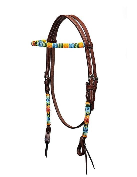 Kopfstück aus stabilem ,dunkel geöltem Leder, mit Perlen verziert.
